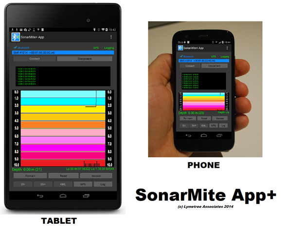SonarMite is a simple App giving the user basic SonarMite display and control functions and supplied free of charge from the Google Play website. SonarMite+ has more advanced features and displays, this will be supplied for $100 from the Google Play website. There will be free email support but limited to the current version of the software and Android operating system.