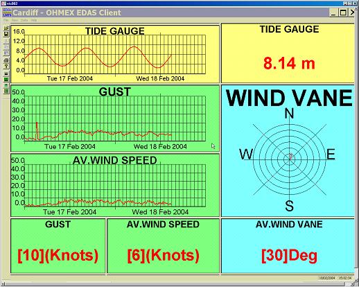 The concept behind EDAS is to provide Environmental Data collection systems using distributed computer processing and saving the results in a standard database format thus making use of modern computer networking technology. The PB100 is supplied with a driver program to interface the environmental data to the EDAS software package. Alternativly the sensor can be used with the standard WeatherCaster display software supplied with the package wich emulates ships panel displays (requires NMEA interface box).